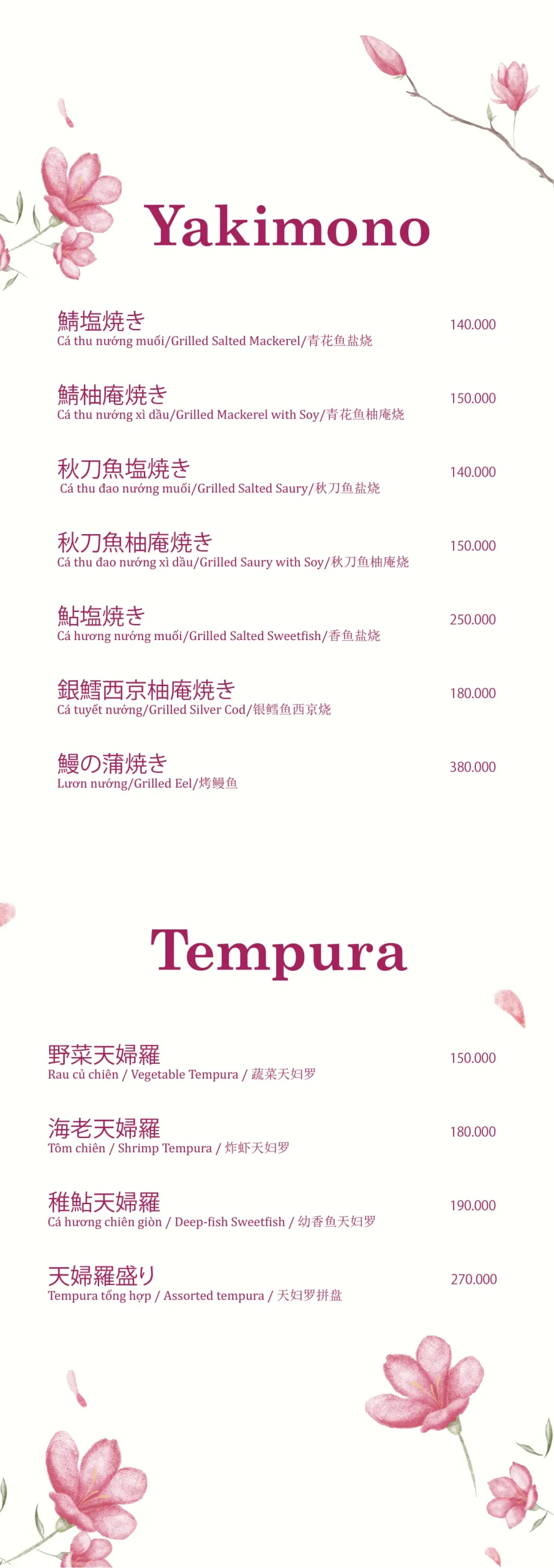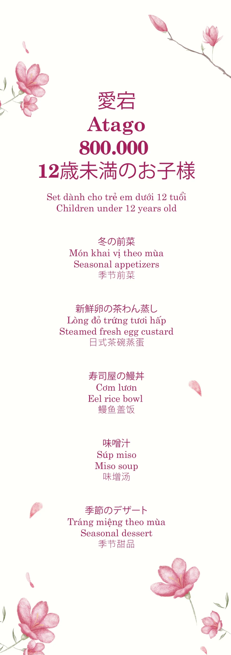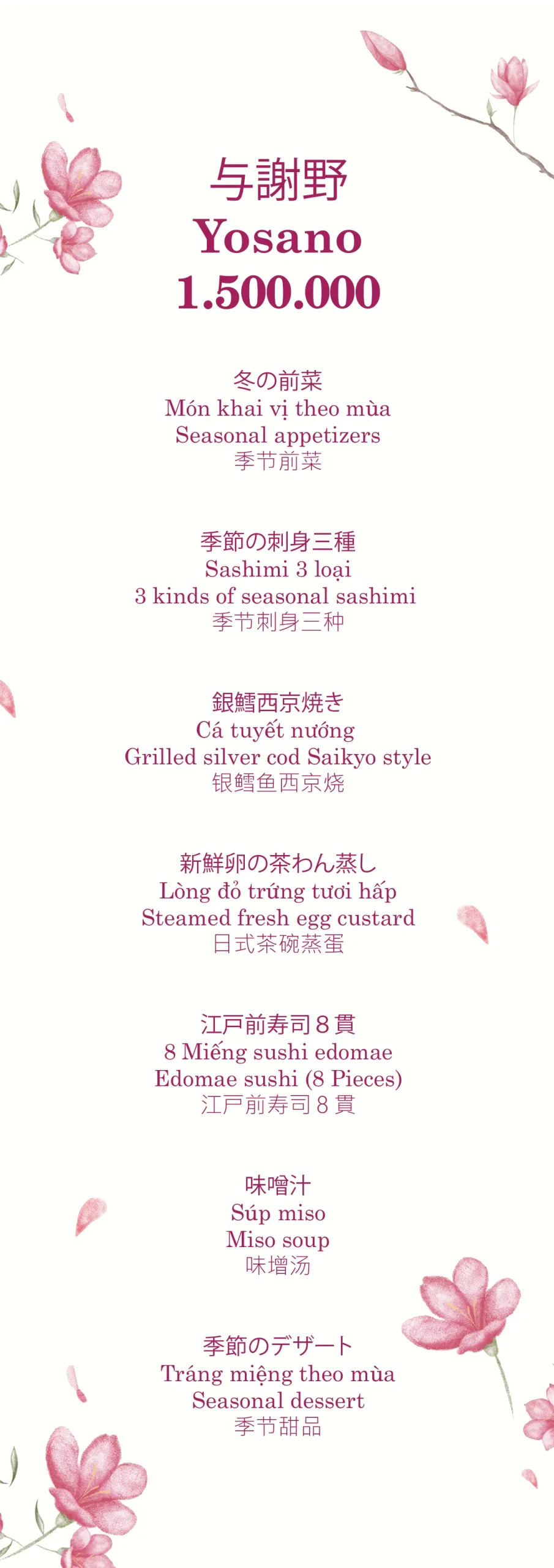 Bữa trưa: 11.30 – 14.00 (Last order: 13.45)