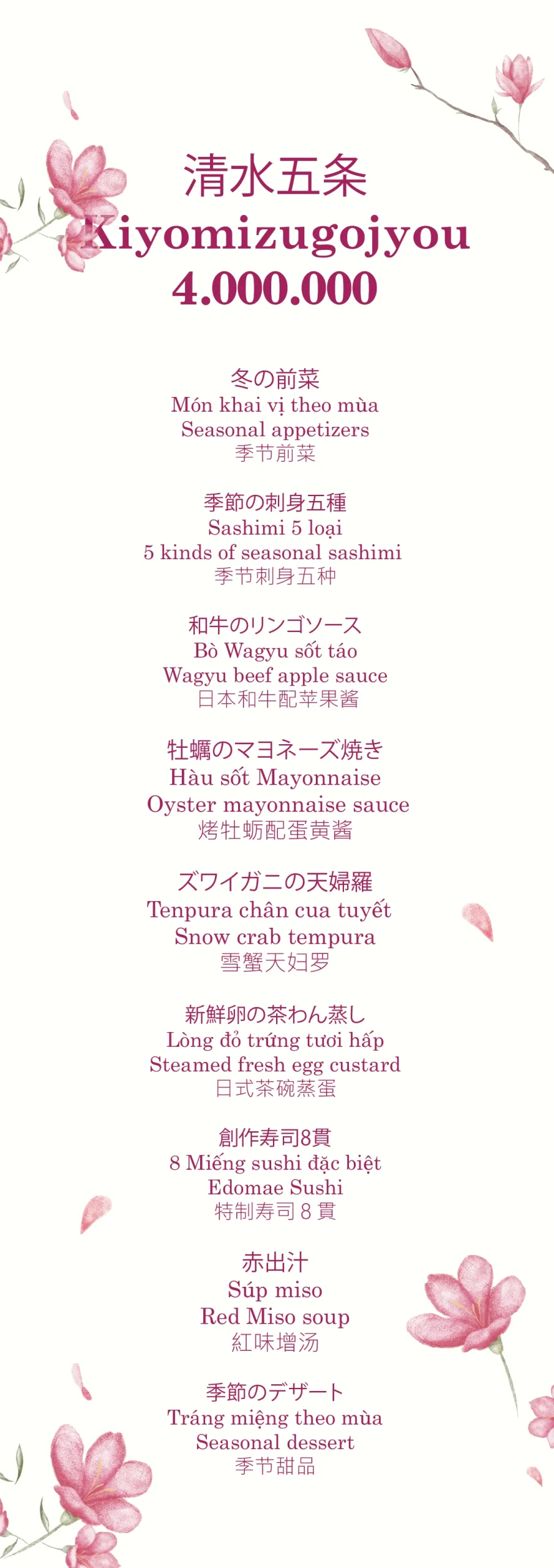 35年近い経験を持つ料理長による美味しい料理を提供するおまかせスタイルの日本料理レストランです ぜひ当レストランでディナーを楽しんでみてください。